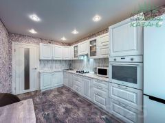 Остаётся бойлер. Натяжные потолки по всей квартире, качественный ремонт — можно заехать и жить, либо сделать локальную доводку под свой вкус.
