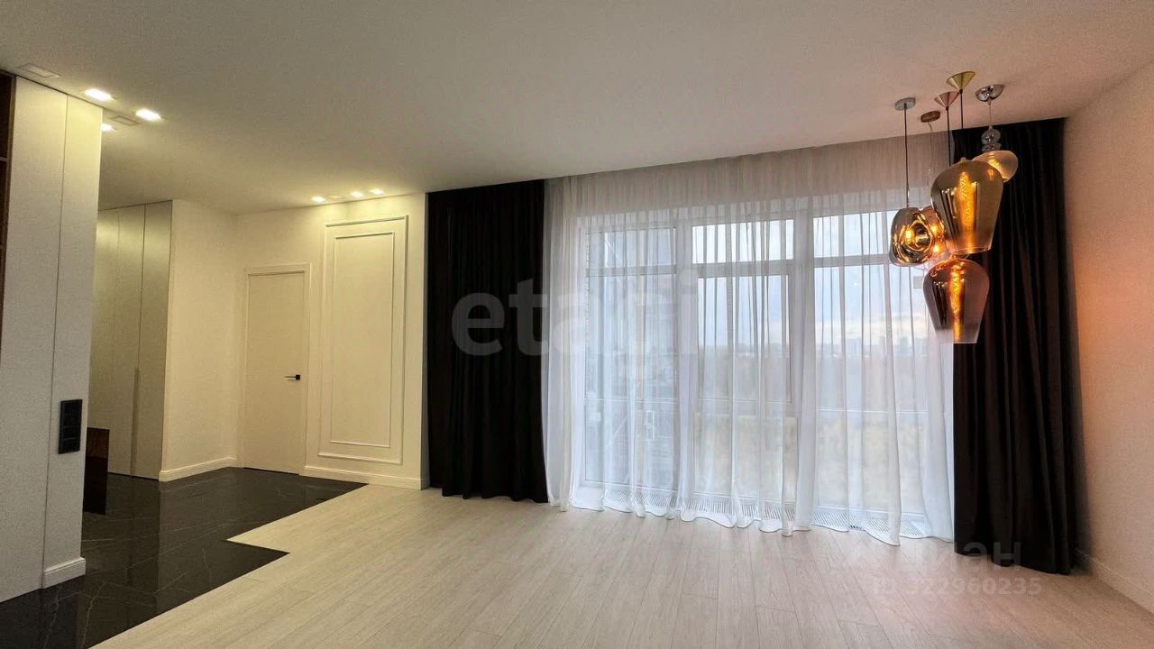 Ключевой особенностью объекта являются панорамные окна в гостиной и выход на такой же балкон, которые обеспечивают постоянное естественное освещение и открывают видовую панораму. Высота потолков в три метра подчеркивает ощущение простора. В отделке использованы исключительно качественные материалы: стены и потолки выровнены и окрашены, в санузле уложен крупноформатный керамогранит итальянского производства. Планировка функциональна и продумана до мелочей, квартира полностью готова к проживанию.
