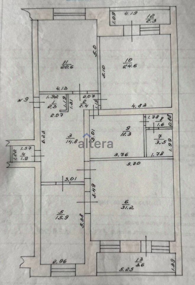 — 1-я комната — 31,2 м², 2-я комната — 24,6 м², 3-я комната — 20,6 м², Кухня — 15,9 м², Ванная — 11.3 м², Зона для стирки и Сушки белья — 5.1 м², Санузел — 1.9 м², Гардеробная — 2.3 м², 1-ый Балкон — 3,6 м², 2-ой Балкон — 2,3 м².