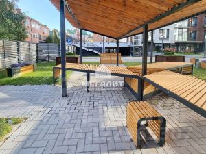 Реализована система закрытого двора без машин, установлены датчики движения и датчики света, энергосберегающее освещение в местах общего пользования. Установлены детская и спортивная площадка, большая зона озеленения и зона отдыха. Предусмотрена служба консьерж-сервис.
