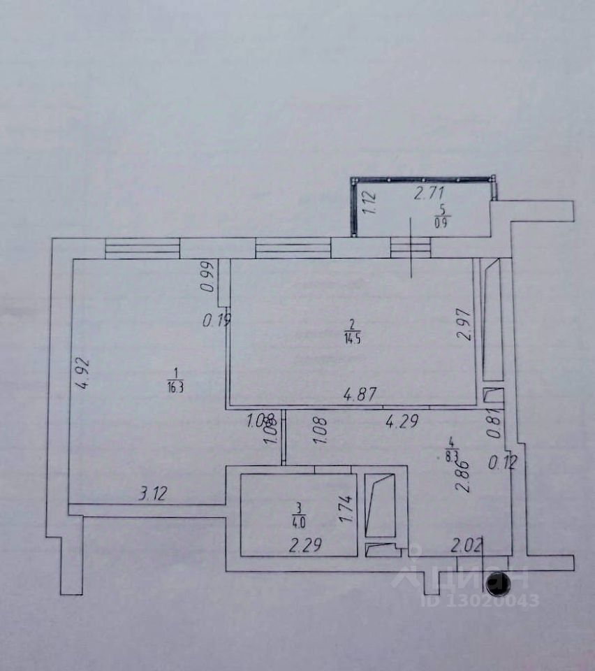 • Площадь квартиры 43.1 кв.м. + 1.8 кв.м. застекленный балкон