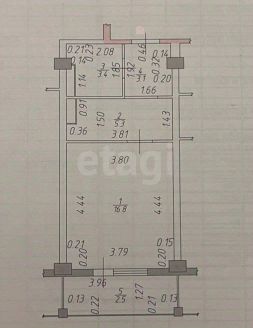 - Большая, светлая комната, площадью 22,1 м², правильной формы, с разделением на кухонную, спальную и рабочую зоны.