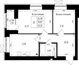 Продается 2 комнатная квартира 84 общей площадью: 52.26 кв.м. на 3 этаже.