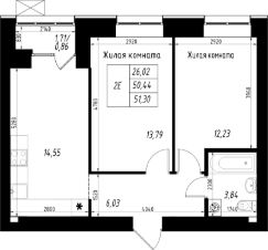 Продается 2 комнатная квартира 113 общей площадью: 51.3 кв.м. на 10 этаже.