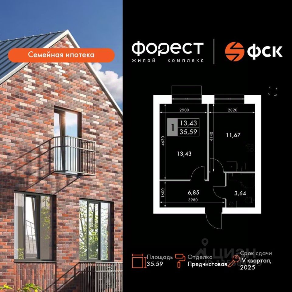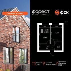Продаётся 1-к квартира номер 110 общей площадью 35.59 кв.м. на 4-м этаже 4 этажного дома. Отделка Whitebox. Цена с учётом скидки!