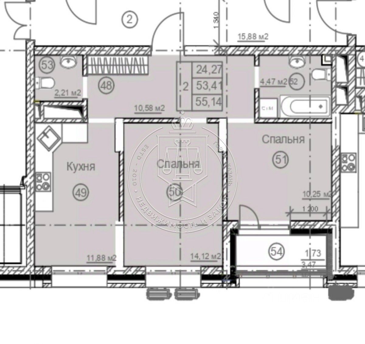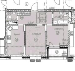 Общая площадь - 55,14 кв.м. ( с учетом лоджии)