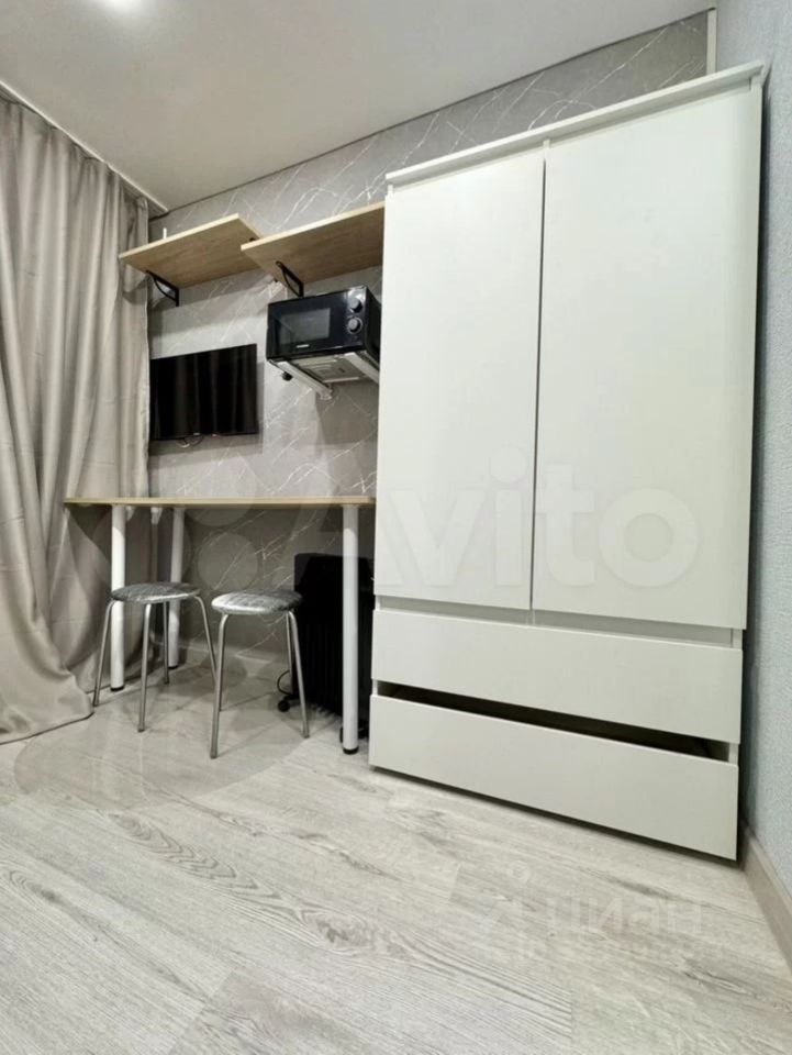В квартире сделан евроремонт. Планировка студии рациональная, с небольшими, но функциональными зонами для жизни и отдыха. Она находится в отдельном отремонтированном и закрывающемся блоке, в котором больше нет квартир, напротив гардеробная.