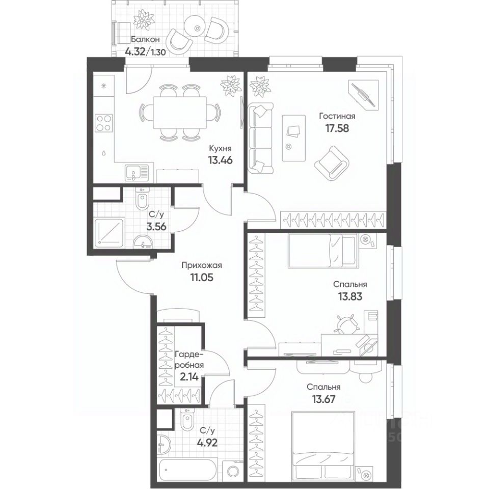 Продаётся 3-комнатная квартира в строящемся доме (Корпус 3), срок сдачи: IV-кв. 2025, общей площадью 82.2 кв.м., на 13 этаже. Новый жилой комплекс "Счастье" от застройщика "Группа Эталон" расположен по адресу город Казань, улица Гаврилова.