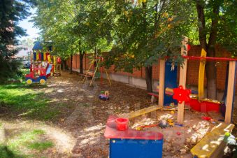Охраняемая огороженная территория двора, двор ухоженный, детская площадка, ели, видеонаблюдение.