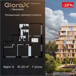 Продаётся 3-комнатная квартира в строящемся доме (Урбан-блок 2), срок сдачи: II-кв. 2028, общей площадью 81.25 кв.м., на 7 этаже. GloraX Экосити Premium - уникальное пространство для экологичной жизни в мегаполисе. Сама локация во многом определила концепцию проекта - редкое сочетание продвинутых технологий в строительстве с невероятными видами на реку Волга и экологичным лесом Кировского района. Проект включает в себя 6 мини-кварталов. Здания расположены так, что "защищают" двор жилого комплекса, создавая единое безопасное пространство.
