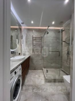 Просторная ванная комната  с подогревом полов, зона душевой также с подогревом.