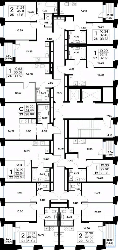 Продается 2-комн. квартира на 4-м этаже в квартале бизнес-класса GloraX Урицкого. Общая площадь лота составляет 47,51 кв. м, из которых 21,24 кв. м отведено под жилую и 13,23 кв. м под кухонную зону. Номер квартиры - 25