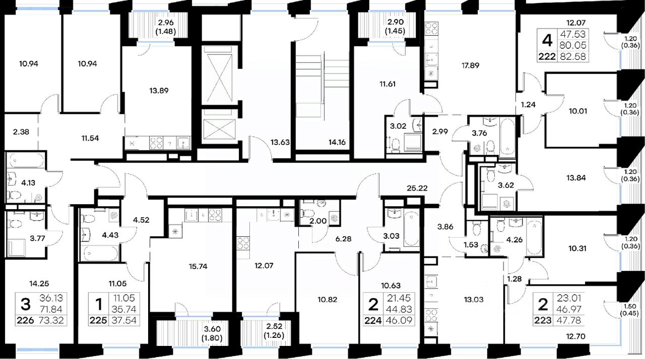 Продается 4-комн. квартира на 6-м этаже в квартале бизнес-класса GloraX Урицкого. Общая площадь лота составляет 82,58 кв. м, из которых 47,53 кв. м отведено под жилую и 17,89 кв. м под кухонную зону. Номер квартиры - 222
