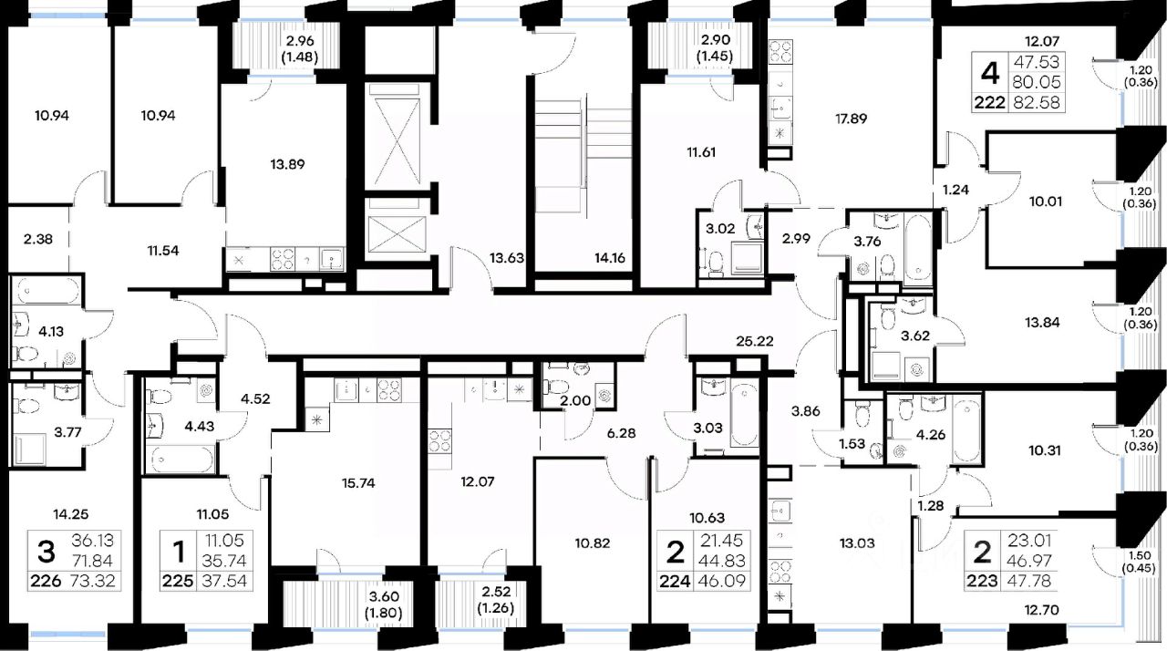 Продается 3-комн. квартира на 6-м этаже в квартале бизнес-класса GloraX Урицкого. Общая площадь лота составляет 73,32 кв. м, из которых 36,13 кв. м отведено под жилую и 13,89 кв. м под кухонную зону. Номер квартиры - 226