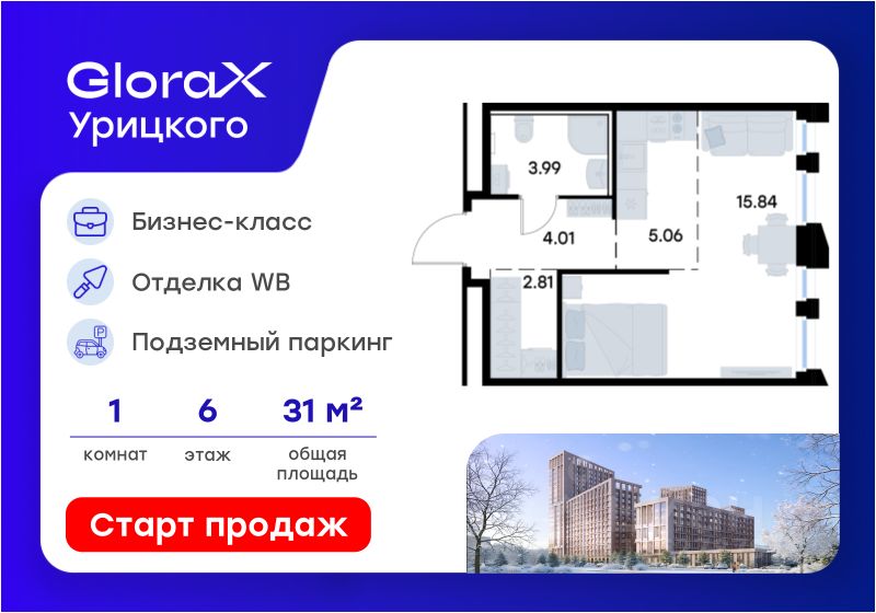 GloraX Урицкого это идеальное сочетание динамики мегаполиса и камерности района, где каждое утро начинается легко, а каждый вечер наполнен ощущением дома
