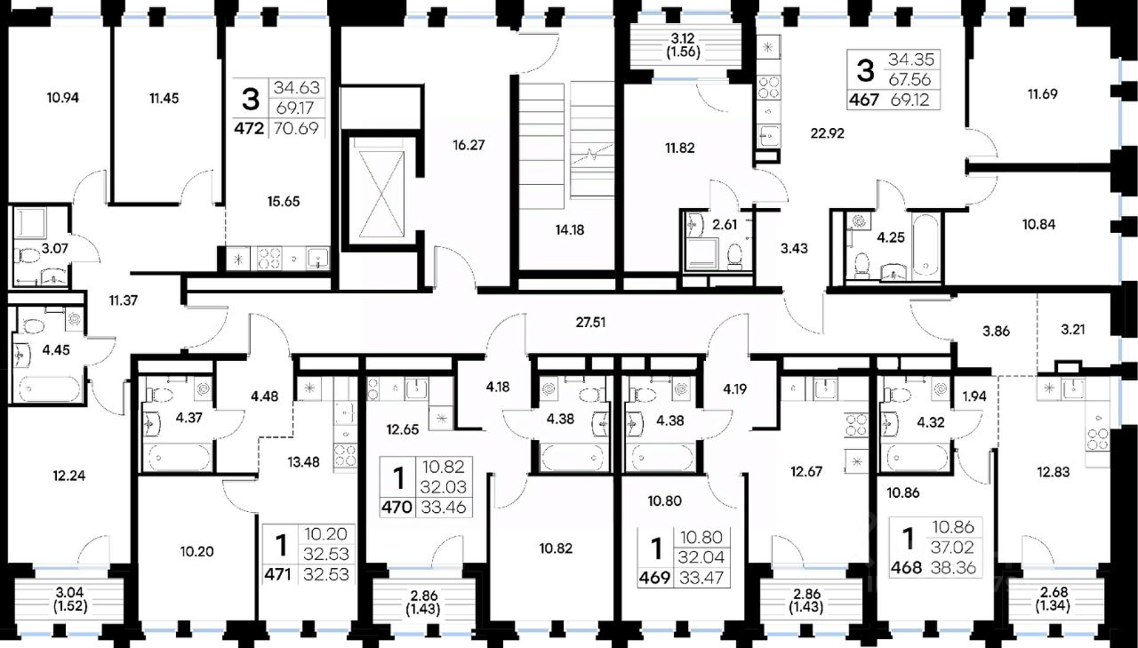 Продается 3-комн. квартира на 2-м этаже в квартале бизнес-класса GloraX Урицкого. Общая площадь лота составляет 69,12 кв. м, из которых 34,35 кв. м отведено под жилую и 22,92 кв. м под кухонную зону. Номер квартиры - 467