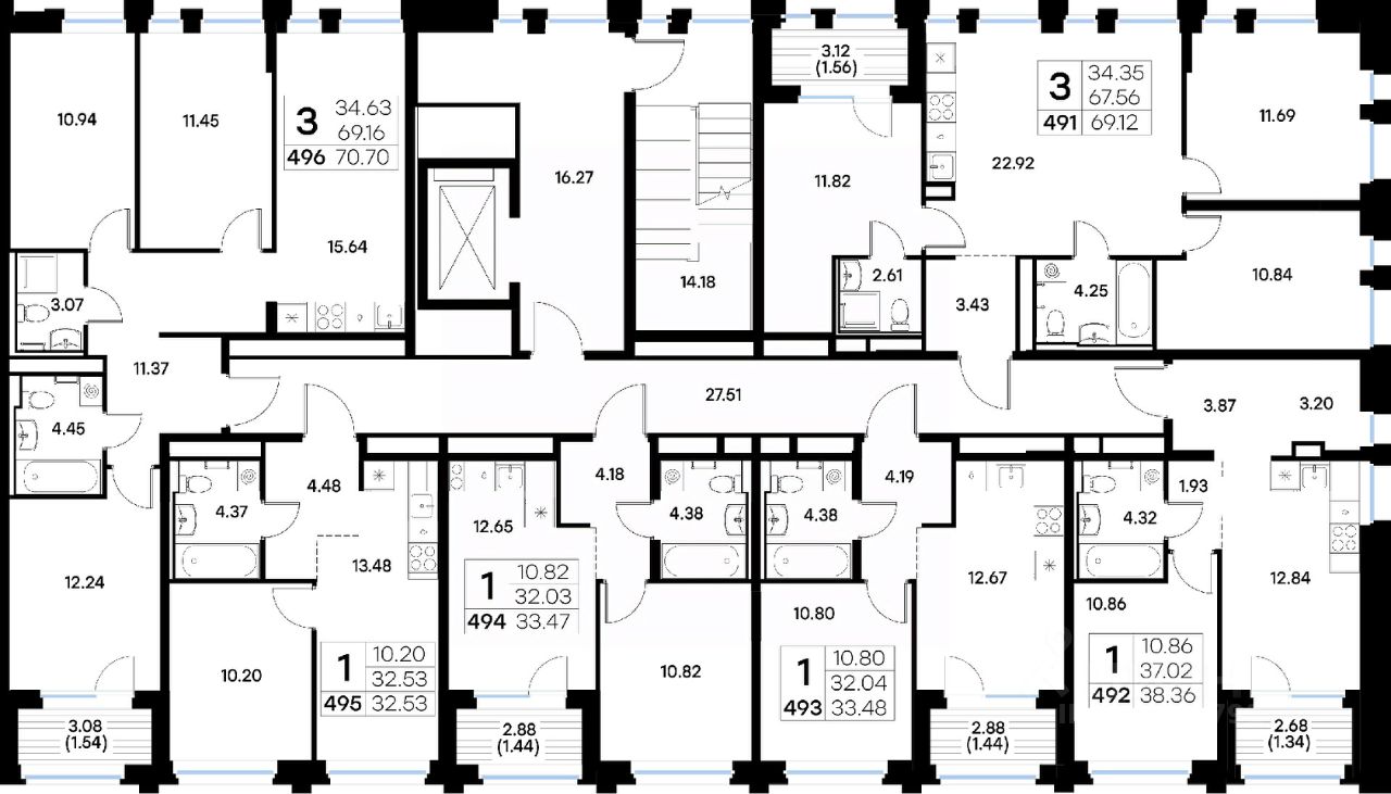 Продается 3-комн. квартира на 6-м этаже в квартале бизнес-класса GloraX Урицкого. Общая площадь лота составляет 69,12 кв. м, из которых 34,35 кв. м отведено под жилую и 22,92 кв. м под кухонную зону. Номер квартиры - 491