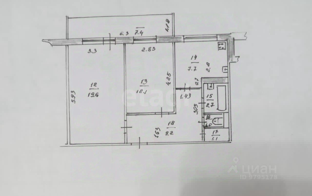 Общая площадь квартиры с лоджией составляет 57,1 м². Квартира имеет оптимальную планировку (см.схему):