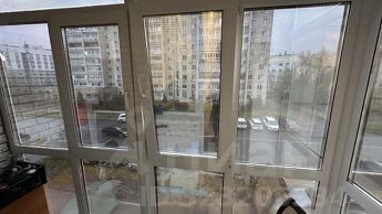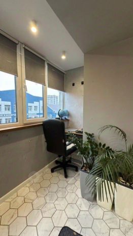 Просторный зал 21,9 квм с выходом на застекленную лоджию. Лоджия утеплена, полы теплые, оформили в рабочий кабинет. Спальня 10,7 квм с выходом на панорамную лоджию.
