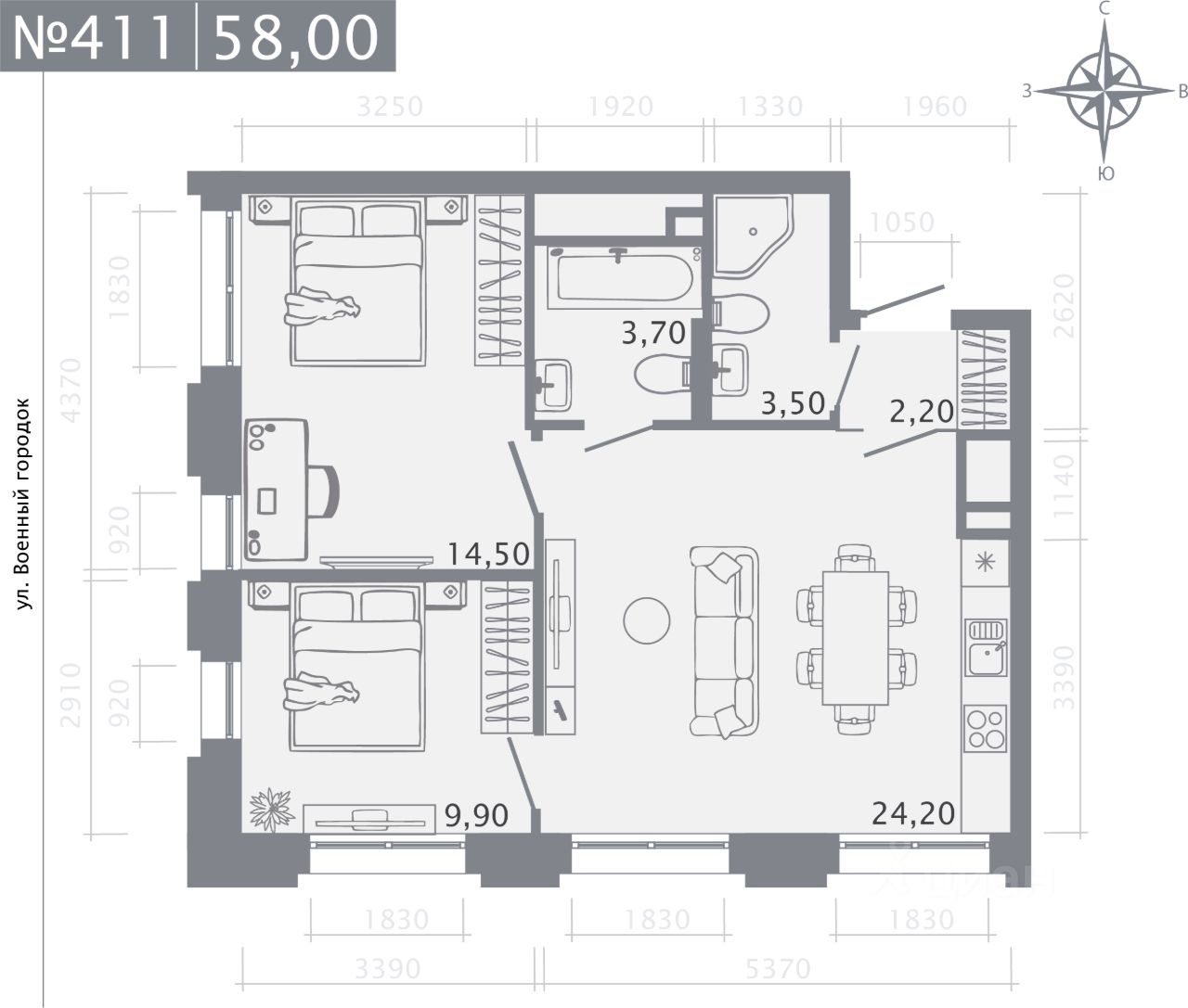 Продаётся 2-комнатная квартира в строящемся доме (Корпус 1), срок сдачи: II-кв. 2028, общей площадью 58 кв.м., на 6 этаже. Новый жилой комплекс "Оригана" от застройщика "КамаСтройИнвест" расположен по адресу: Россия, Республика Татарстан, Казань, улица Оренбургский Тракт