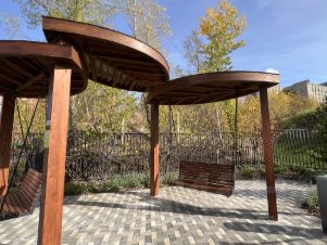 Дом находится на охраняемой огороженной территории, имеется детская площадка, зона отдыха, развитая инфраструктура, парковка за шлагбаумом во дворе.