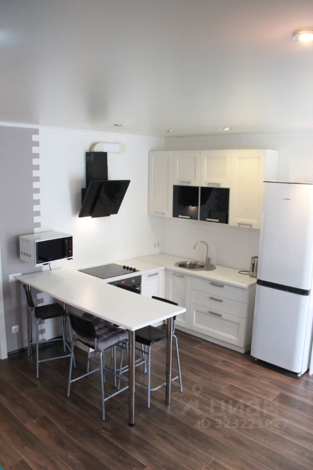 - Кухонный гарнитур, вытяжка, духовка, электроплита, место для микроволновки.