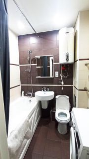 ---> Санузел совмещённый, оснащён всей необходимой сантехникой.