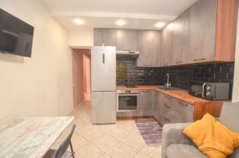 В квартире выполнен ремонт: напольное покрытие - керамогранит и ламинат, подвесные потолки, выровненные стены - оклеены обои, утепленная зона балкона, сан узел в плитке.