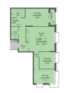 Функциональная планировка: имеются 3 спальные комнаты, одна из которых мастер-спальная со своим гардеробом и сан. узлом, Кухня- гостиная площадью 27кв.м..
