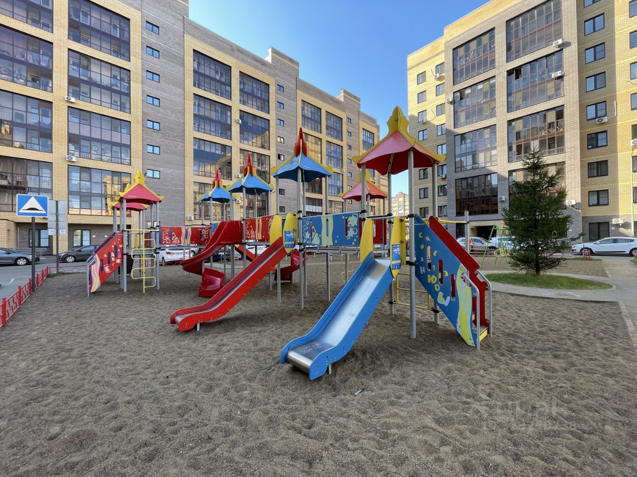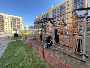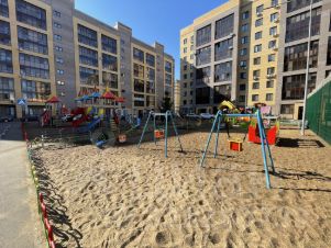 Современная детская и спортивная площадка во дворе.