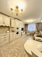 В квартире сделан дизайнерский ремонт, продумана каждая деталь. Все материалы премиум класса, дорогая мебель из массива. В квартире остается вся мебель и встроенная техника.