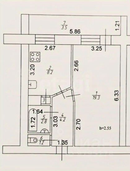 В квартире функциональная планировка - кухня (8,2 кв.м.) с современным новым кухонным гарнитуром и новой бытовой техникой (варочная плита, духовой шкаф, вытяжка, холодильник, стиральная машина), реализован шкаф для хранения бытовых принадлежностей; изолированная комната (19,3 кв.м.) с установленным кондиционером; раздельный санузел с надежно проведенными коммуникациями и качественной сантехникой, а также установленным водонагревателем, что обеспечивает круглогодичное наличие горячей воды; входная группа; просторная застекленная лоджия с прекрасным видом на город.