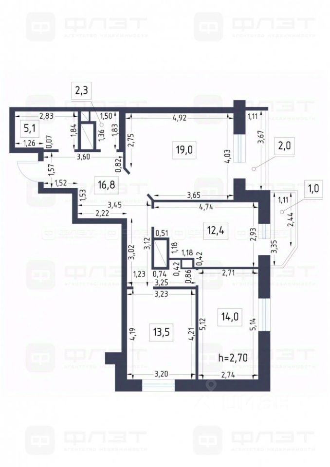 Общая площадь S= 83,1кв.м., Жилая площадь S= 45,5 кв.м., Площадь кухни S=12 кв.м.