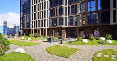 Эксклюзивная территорияна крыше стилобата с ландшафтным дизайном.
