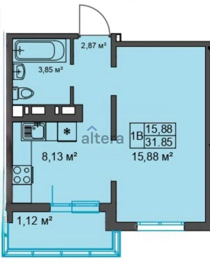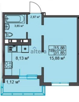 Арт. 120973101 Продаётся уютная 1-ком. кв. S=31 м² на 12 этаже в современном ЖК "Светлая Долина", Советский район.