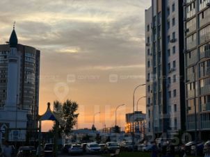 Благоустроенная территория: Ухоженный двор с детской площадкой, зонами для отдыха и охраняемой парковкой со шлагбаумом. Рядом новая мечеть.