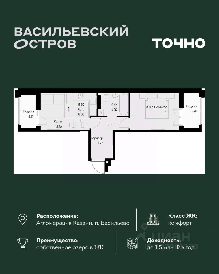 ЖК "Васильевский остров" — масштабный проект ТОЧНО в Казанской агломерации. Просторная территория 88 Га спроектирована для комфортной жизни: озеро с набережной и пляжем, каток, зелёные маршруты. В проекте комплекса — школа на 1 224 места, 2 детских сада на 680 мест, детская и взрослая поликлиники, фитнес-центр с бассейном, термальный комплекс, фермерский рынок, магазины, кафе и рестораны.