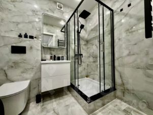 Отличная планировка: общая площадь-43,7 кв.м, просторная кухня- 27,41 кв.м, комната -12,42 м, санузел- 3,74 м, прихожая- 6,89 м.