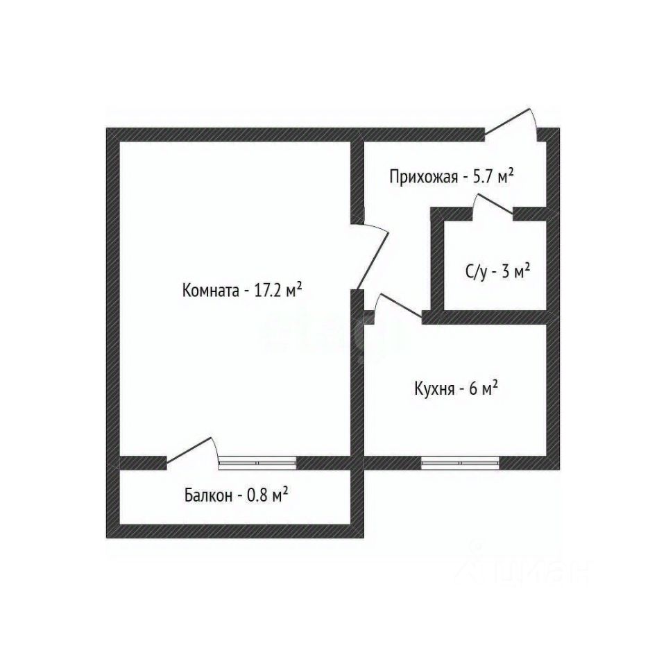 • Площадь комнаты: 17,2 м² с выходом на балкон
