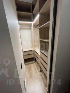 Планировка: Просторная гостиная-кухня с островом и обеденной зоной, отдельная спальня и гардеробная комната.