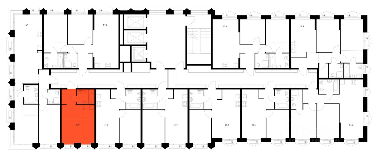 Продаётся квартира-студия площадью 25,9 кв.м на 25 этаже 26 этажного дома (Корпус 3, Секция 3) проекта ПИК Сиберово. Светлый просторный подъезд на уровне земли, функциональная планировка, большие окна, предчистовая отделка.