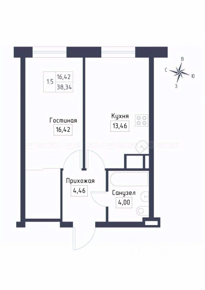 площадь квартиры 38,4 кв.м.