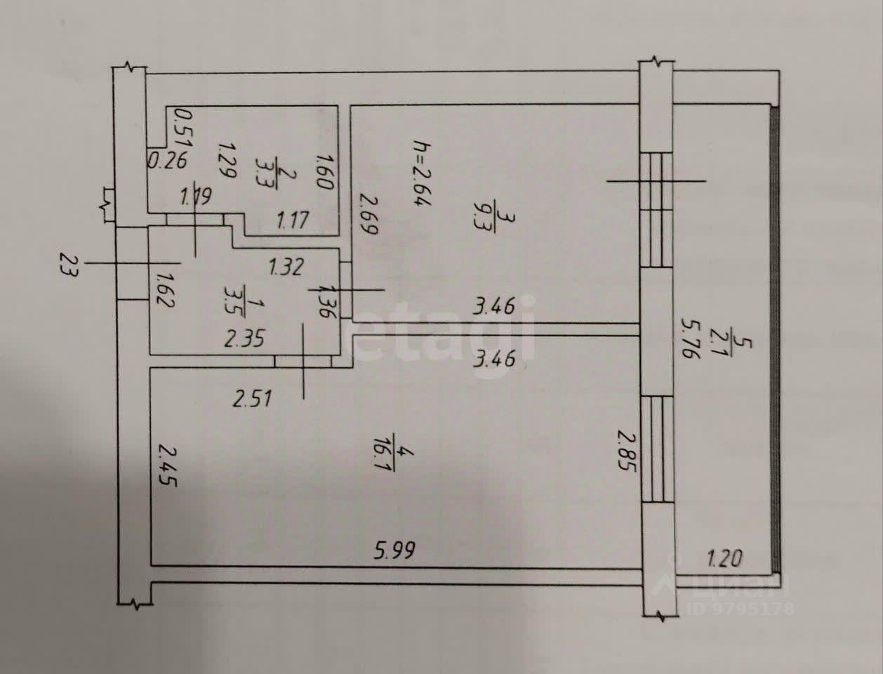 Квартира расположена на 6-м этаже 9-этажного дома.