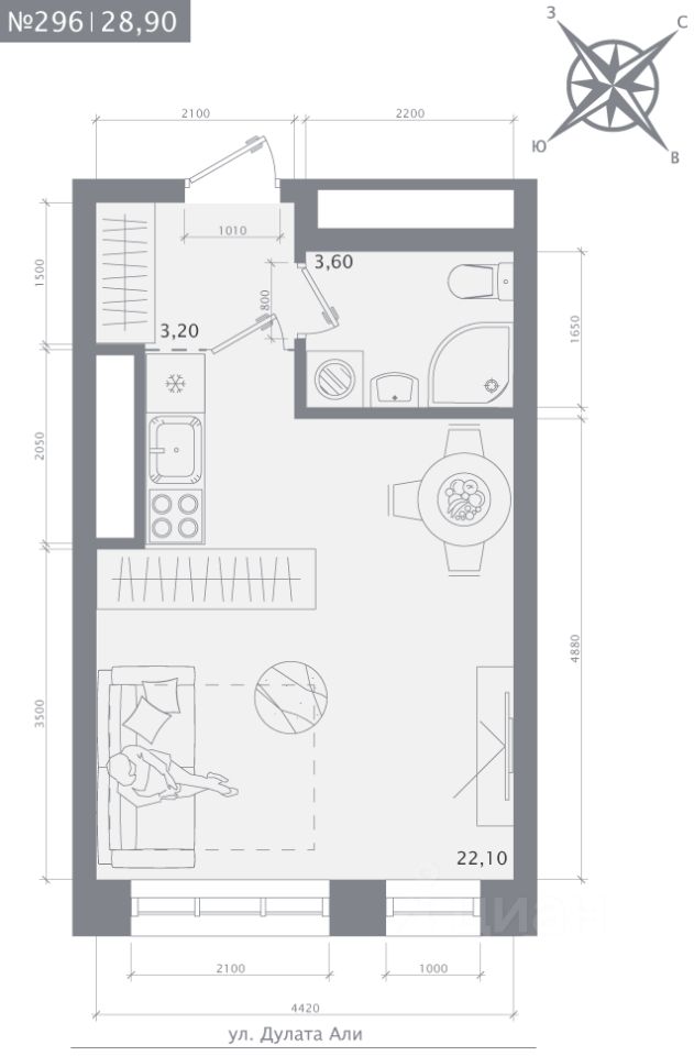 Продаётся студия в строящемся доме (1712), срок сдачи: IV-кв. 2027, общей площадью 28.9 кв.м., на 13 этаже.