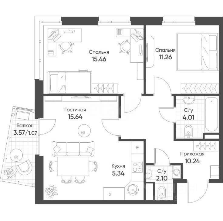 Продается трехкомнатная квартира в новом ЖК бизнес класса "Счастье в Казани" от застройщика Эталон! Сдается в конце 2025 года!