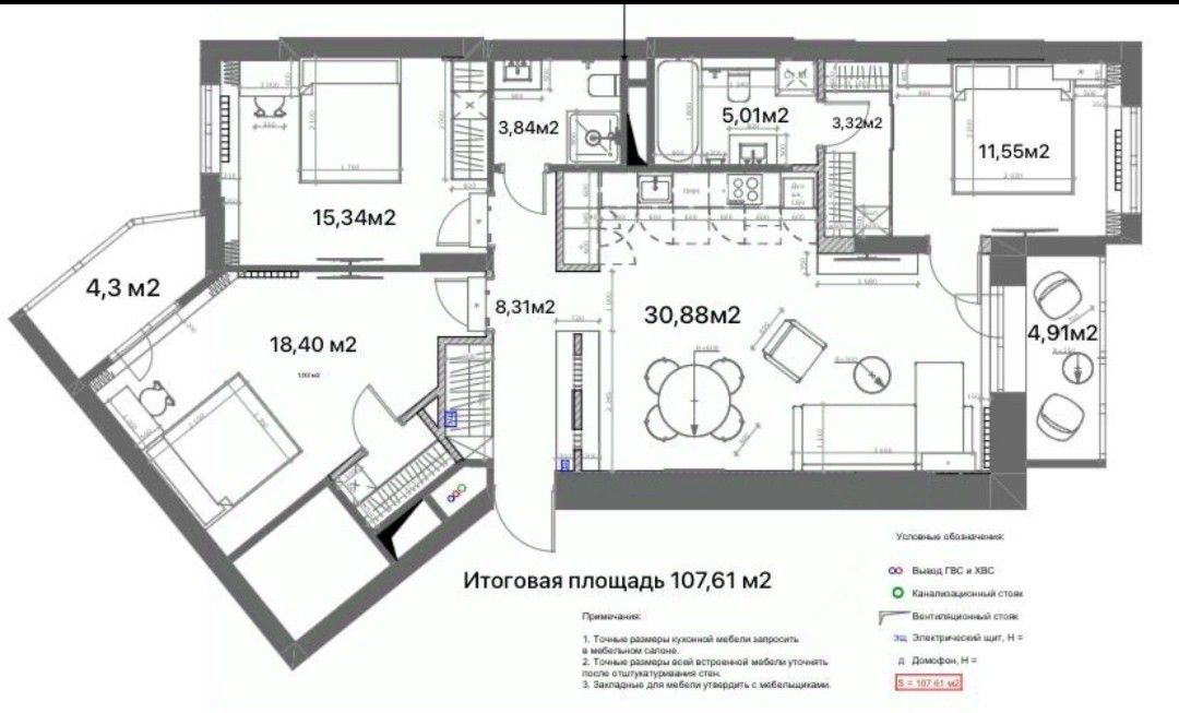 Квартира оборудована всей необходимой мебелью и техникой, выполнен дизайнерский ремонт с применением современных высококачественных материалов, продуманная планировка позволила комфортно разместить полноценную кухню-гостиную и изолированные три спальные комнаты со своими гардеробными и сан узлами!!! Два сан узла, две лоджии. Окна в разные стороны, планировка распашонка.