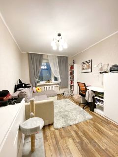 В квартире выполнен доброкачественный косметический ремонт, санузел раздельный, большой зал разделен на две полноценные спальные комнаты. Отопление центральное, квартира очень теплая, уютная. При входе и в санузле теплые полы. Балкон обшит и утеплен.