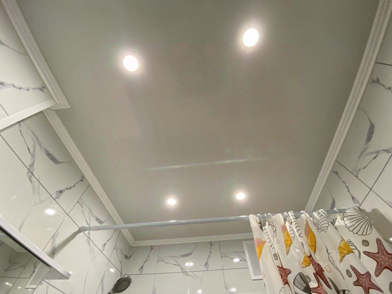 + Выровнены стены, потолки натяжные с точечными светильниками