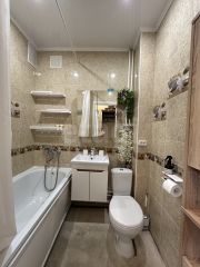 В квартире сделан свежий ремонт: натяжные потолки, установлены пластиковые окна, поклеены новые обои, уложен влагостойкий дорогой ламинат, дизайнерская отделка кухни и прихожей