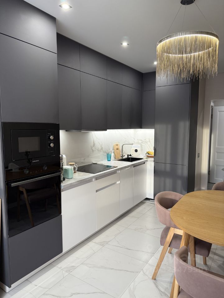 Квартира с красивым свежим ремонтом — можно заехать и жить сразу! Вся мебель выполнена под заказ и остается новым владельцам. Также в квартире остаются кондиционер, холодильник, посудомоечная и стиральная машины.